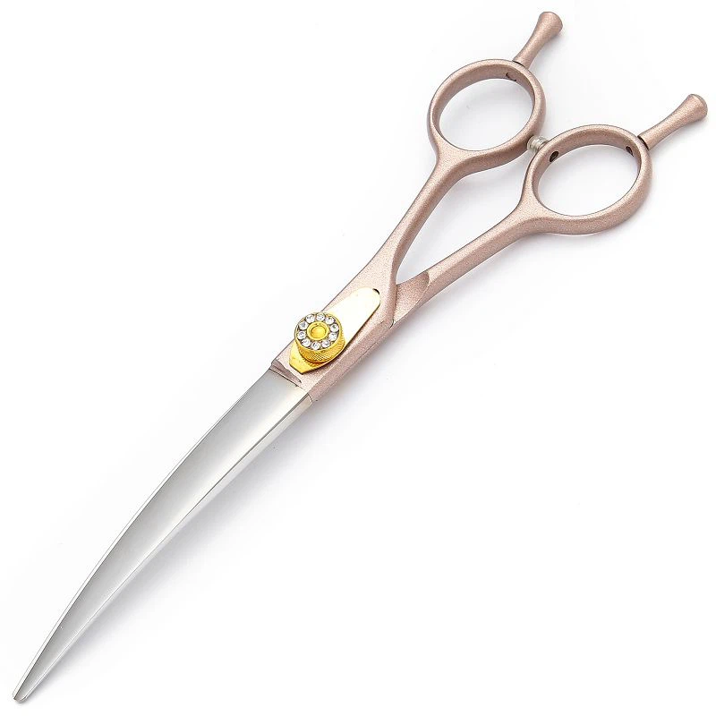 قیچی منحنی، با این حال، ممکن است دسته هایی داشته باشد که زاویه دار یا شکلی برای تکمیل انحنای تیغه دارند. این طراحی ارگونومیک به آرایشگر کمک می کند تا در هنگام استفاده از قیچی حالت دست طبیعی تری داشته باشد. هنگام کوتاه کردن منحنیهای بدن حیوان خانگی، دستههای زاویهدار فشار مچ را کاهش میدهند و امکان کنترل دقیقتری را فراهم میکنند.
